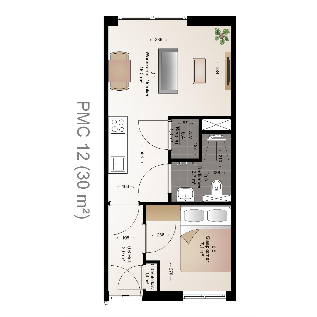slaapkamer, badkamer en technische ruimte en beschikken over een