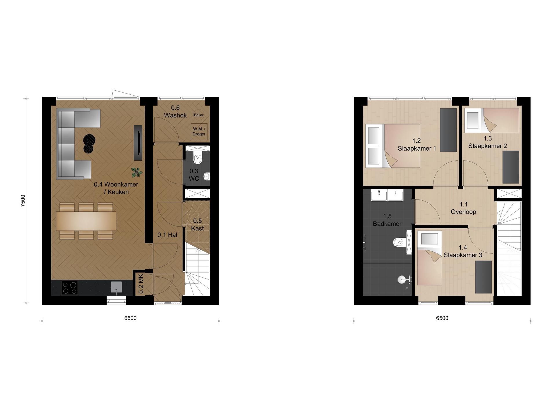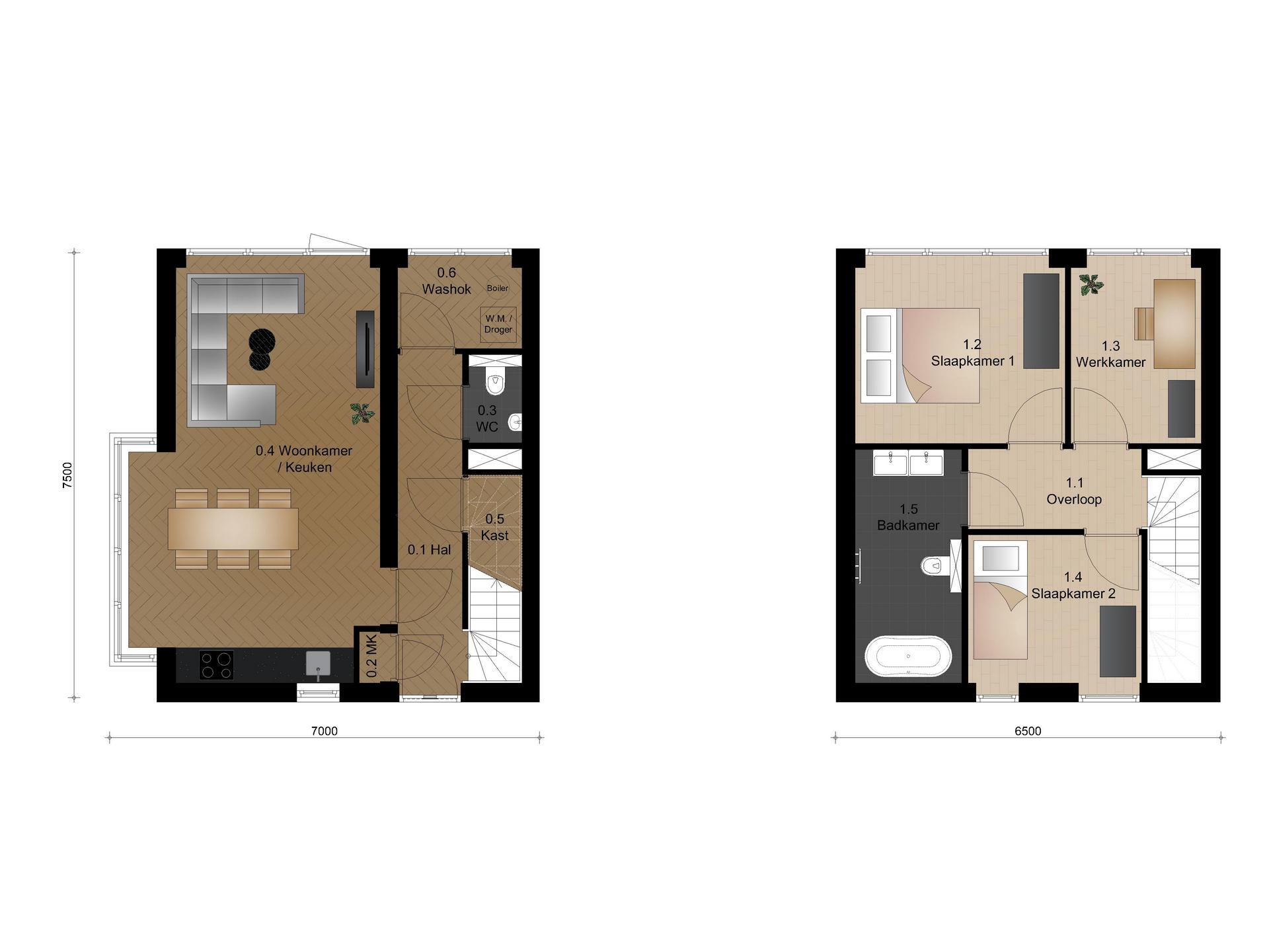Woonoppervlak: variërend van ± 65 tot ± 90 m²