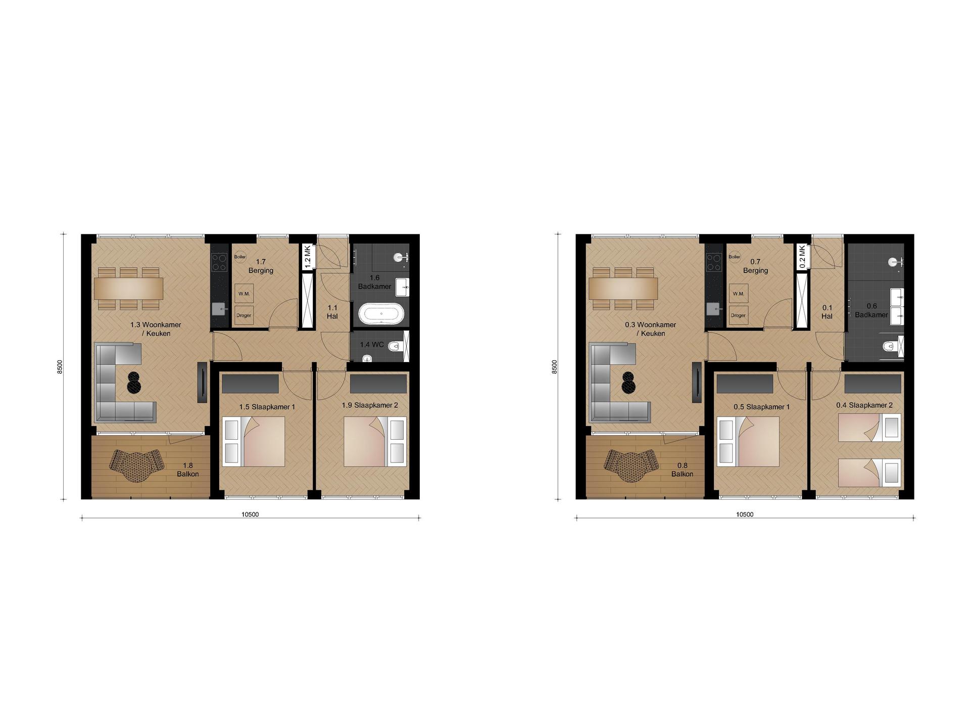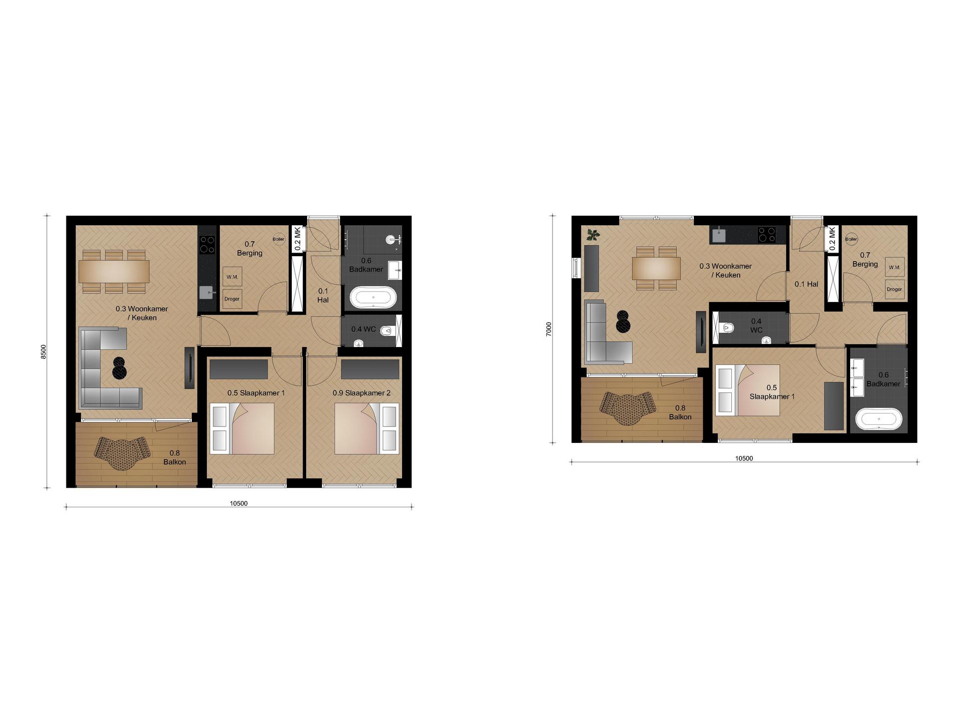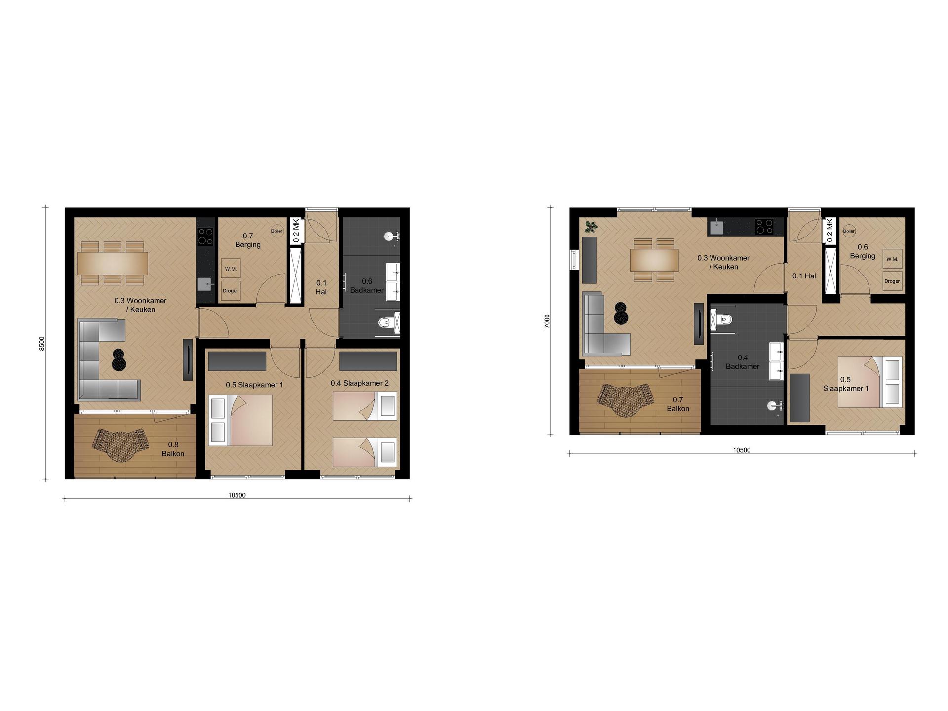 Kamers: variërend van 2 tot 3 kamers
