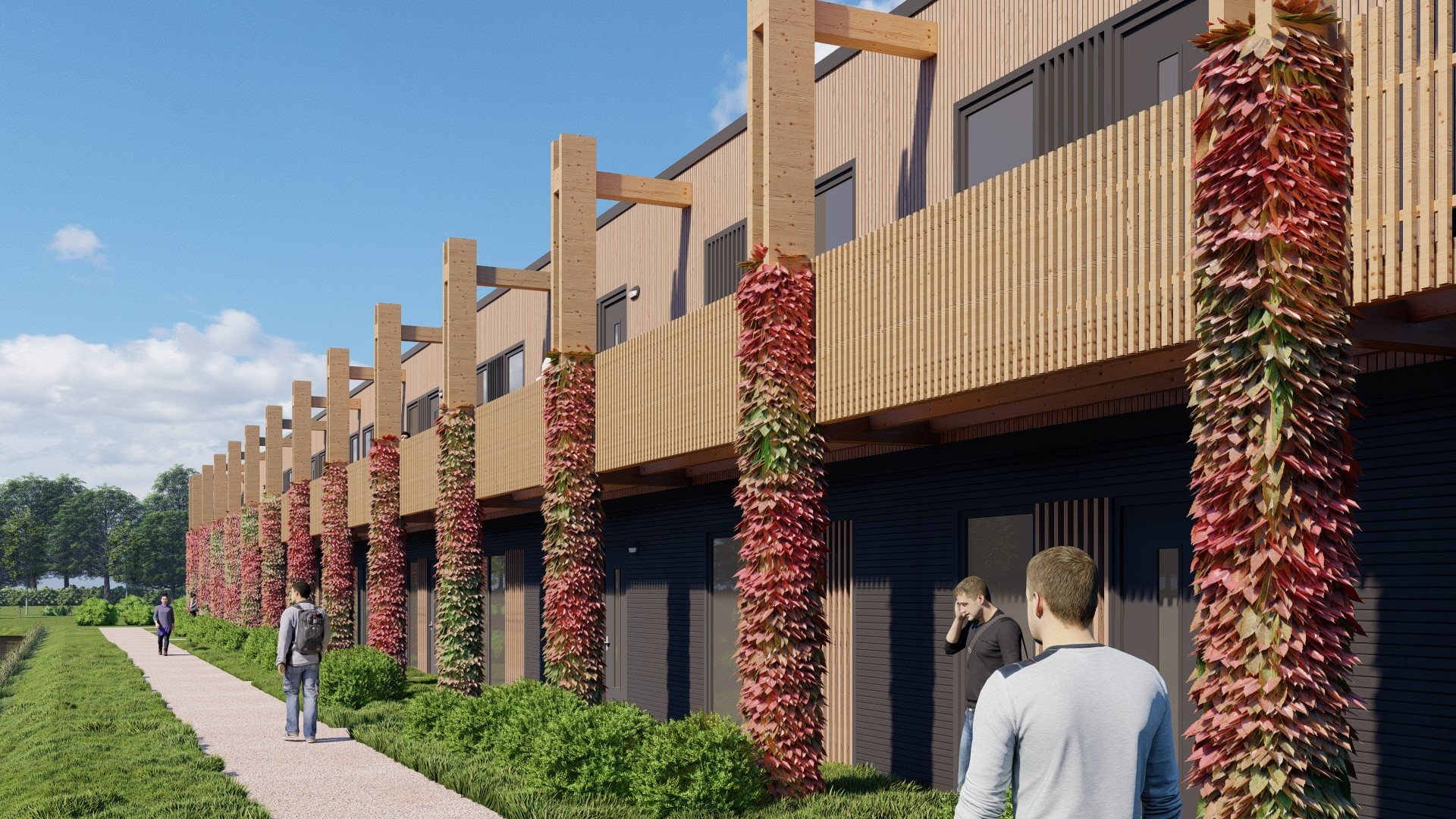 Onze woningen zijn compleet zelfvoorzienend en demontabel. Ze bestaan uit volledig recyclebaar materiaal, zijn fossielvrij en eenvoudig te verplaatsen. Deze innovatieve manier van bouwen is toekomstgericht: “een woning die is gemaakt om door te geven”. De woningen zijn voorzien van een woonkamer met open keuken, meerdere slaapkamers, badkamer, toilet en technische ruimte en beschikken over een eigen bergruimte. Ze bieden een warme, natuurlijke uitstraling in harmonie de bestaande omgeving. Kortom, een plek waar bewoners zich thuis voelen en comfortabel kunnen wonen.